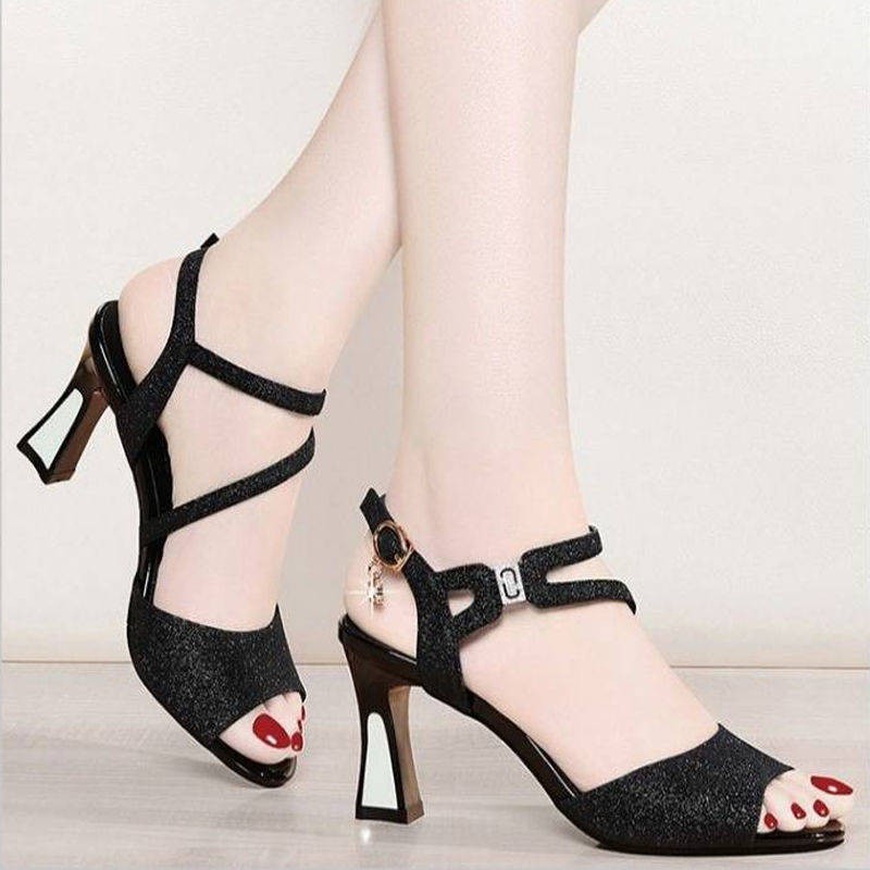 Kasut Perempuan Tumit Tinggi Wanita Sandal Wanita Pertengahan Tumit 2020 Musim Panas Baru Kasut Bertumit Tinggi Hitam Seksi Versi Korea Bertumit Tebal Gaya Wanita Gesper Kasut Wanita Shopee Malaysia